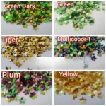 Yellow, dark green, Gold Copper, Green, Multicolor 1, Multicolor 2, Orange, Plum, Tiger |