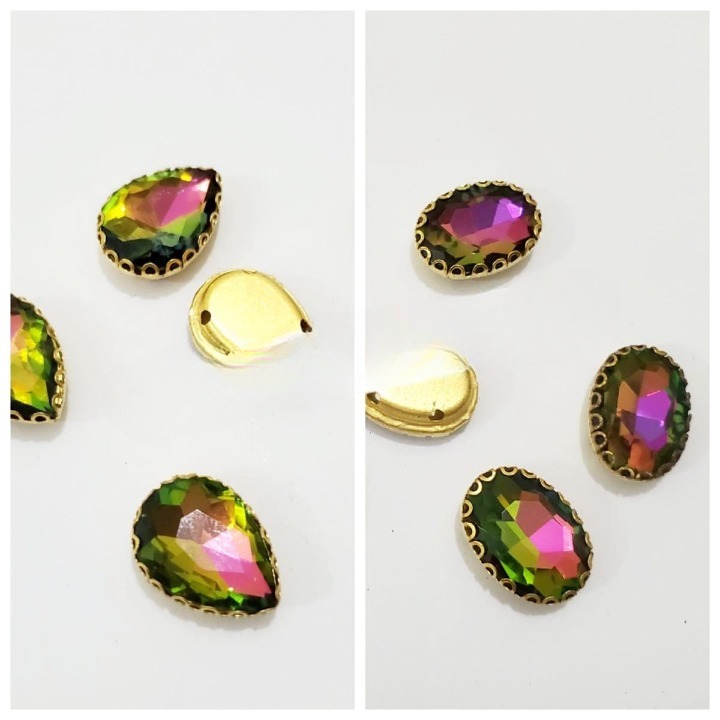 6 Pcs Colorful Oval Glass Sew On Rhienstones with Golden Base Crystal Clipstones