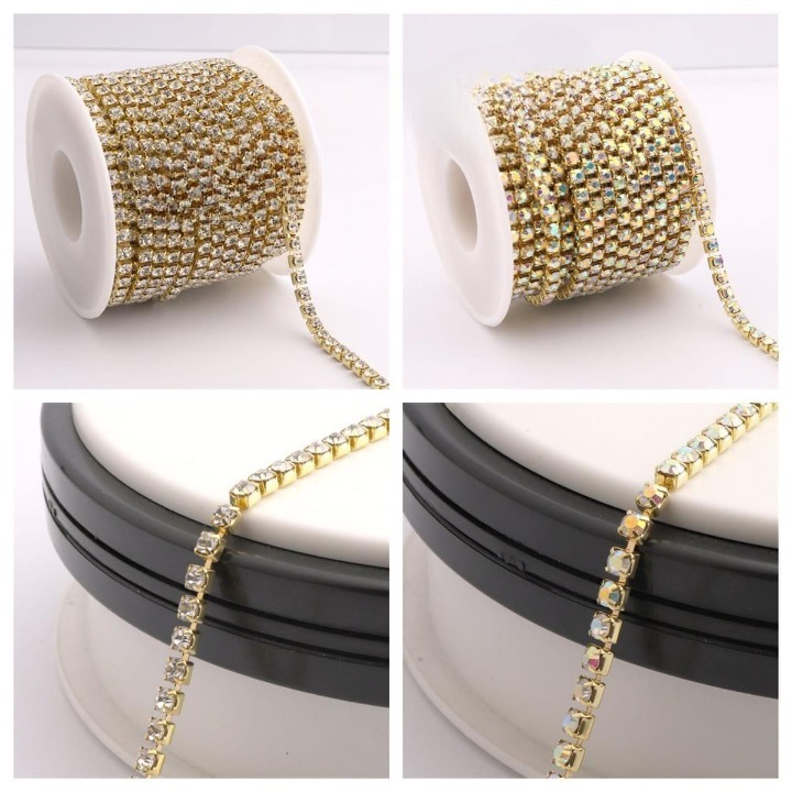 Home Rhinestone Laces 4 Gaz (2 Gaz Each)Super Shinny Crystal Rhinestones DIY Jewellery Gold Color