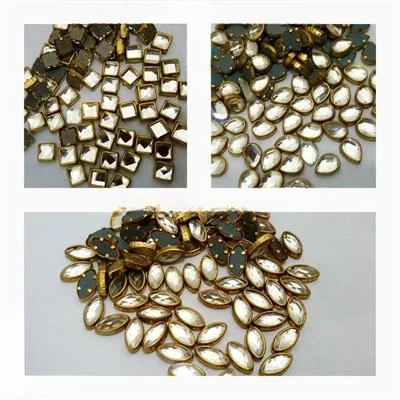 36 Pcs Total (12 Pcs Each) Real Kundan Beads DIY Sewing Jewelry Decoration (Leave Shape 1, Leave Shape 2, Square Shape)