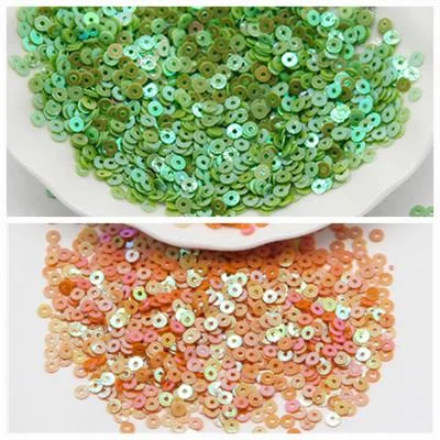 Pack Of 2 Tola Round Sitaray in Various Colors, Beautiful Design, Sequins Crafts 3mm Green/Orange